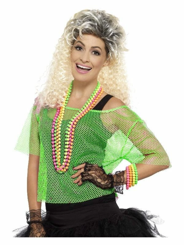 80s Zeer Felle Neon Groene Visnet Shirt Vrouw