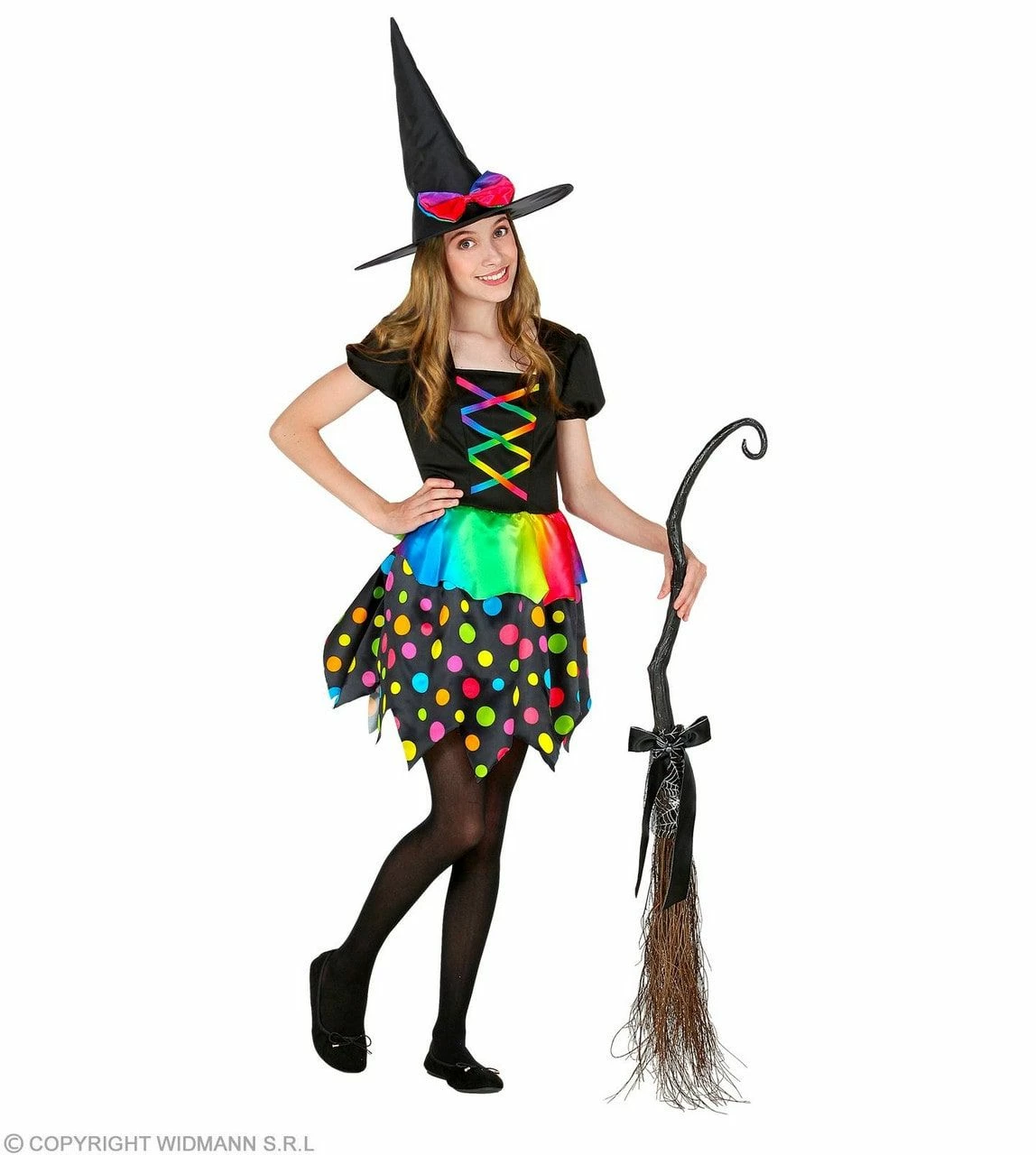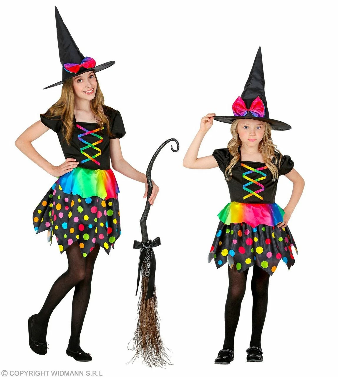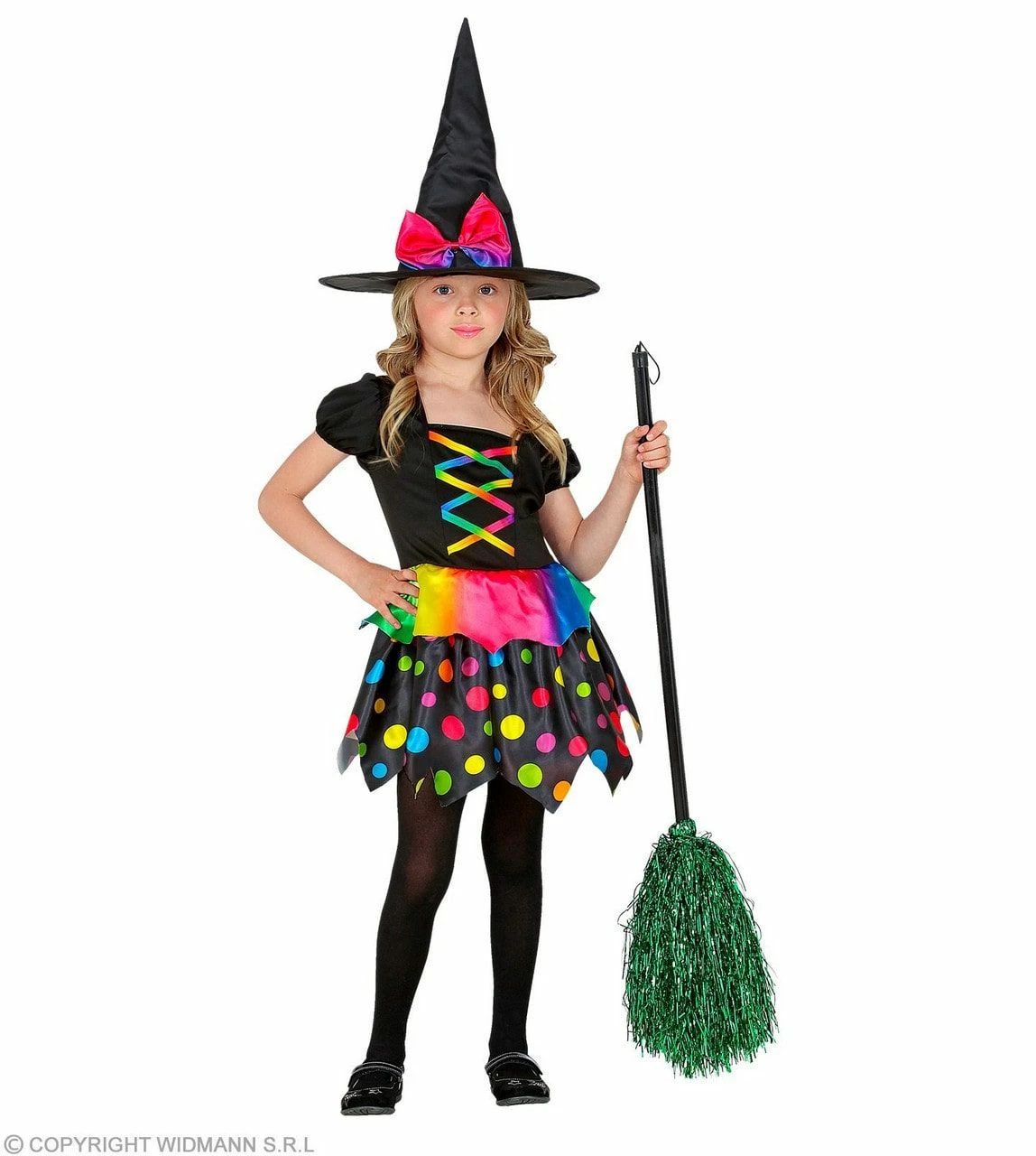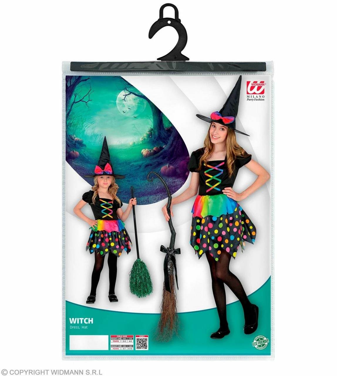 Gekleurde Polkadot Heks Henrika Meisje Kostuum