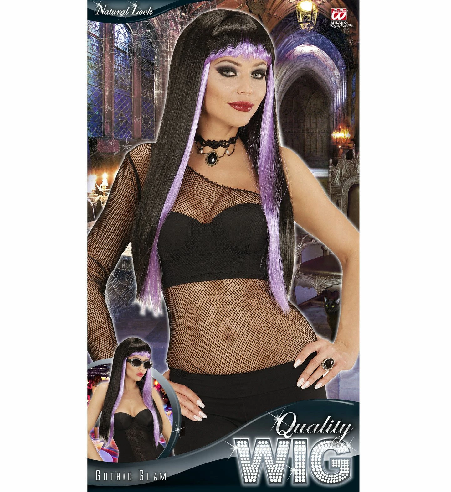 Halloween Pruik, Glamour Gothic Zwart / Paars