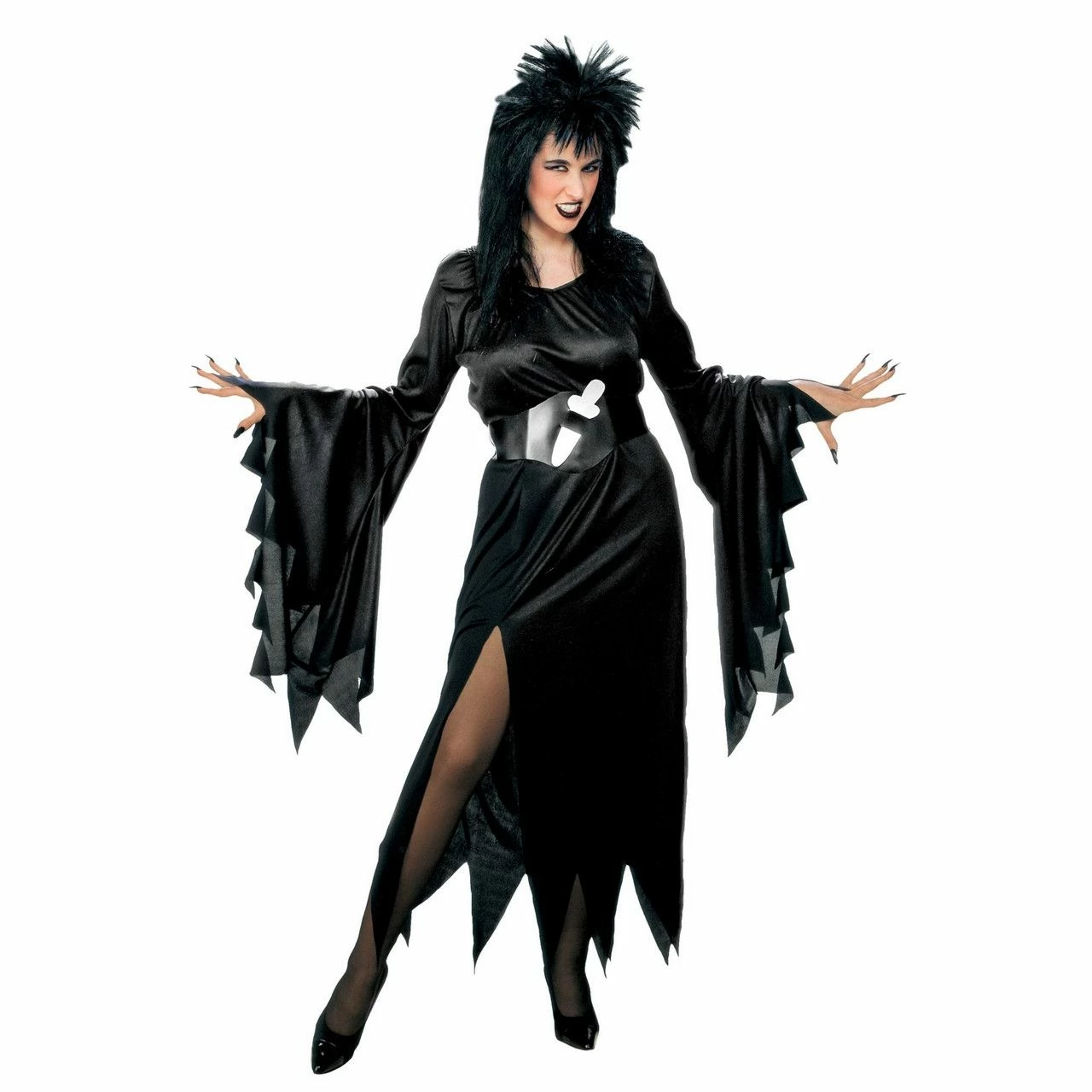 Als jij dit horrible Lady Elvira XL kostuum draagt, valt er niet met jou te spotten. Dat is meteen duidelijk, want in dit duistere pak zie je er nou niet bepaald uit als een blij ei. Op een Halloween party of ander onheilspellende feest maak je in deze Elvira kleding dan ook helemaal de blits.