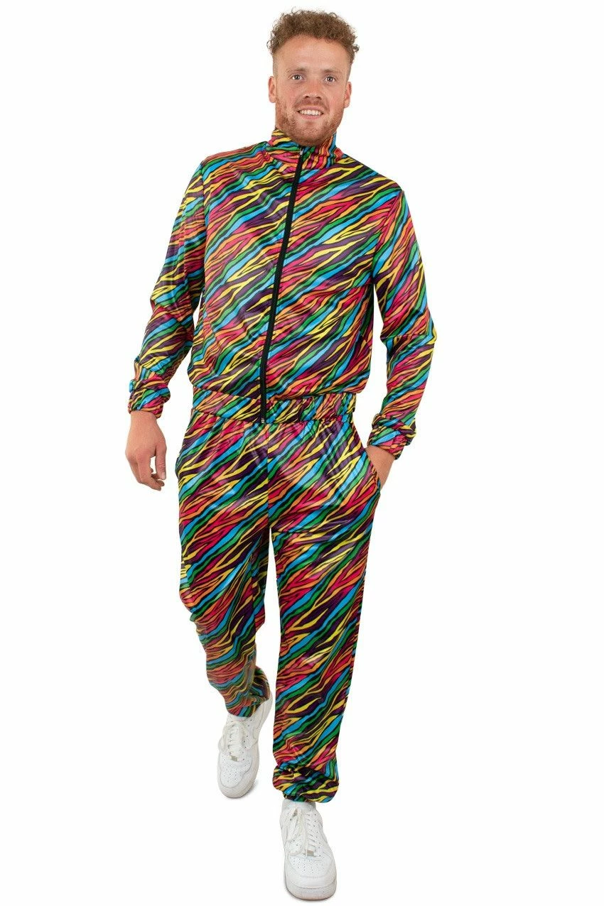 Jaren 80 Trainingspak Kleurige Zebra Strepen Heren Man Kostuum
