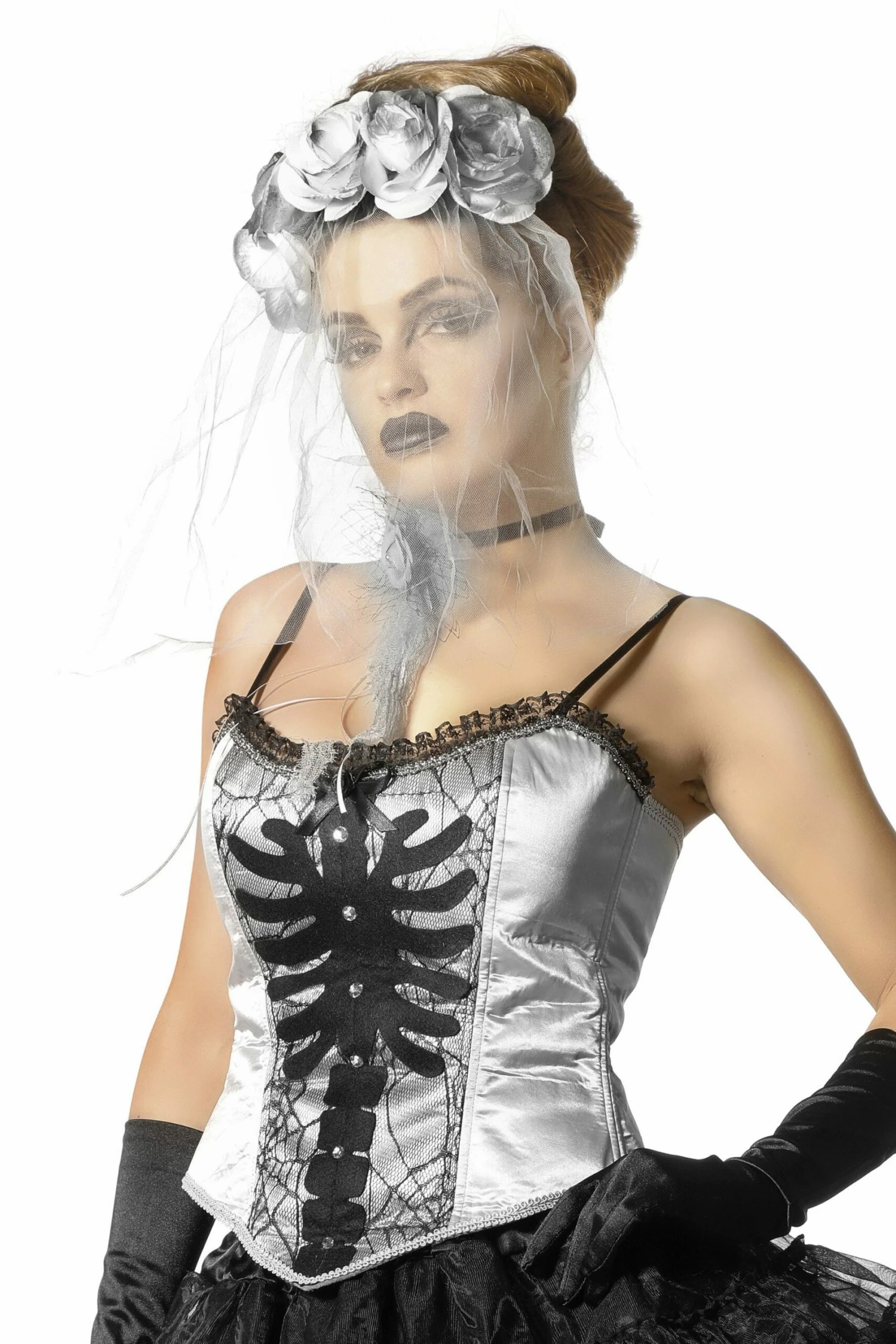 Korset Zilver Met Skelet Print En Spinnenwebben Vrouw