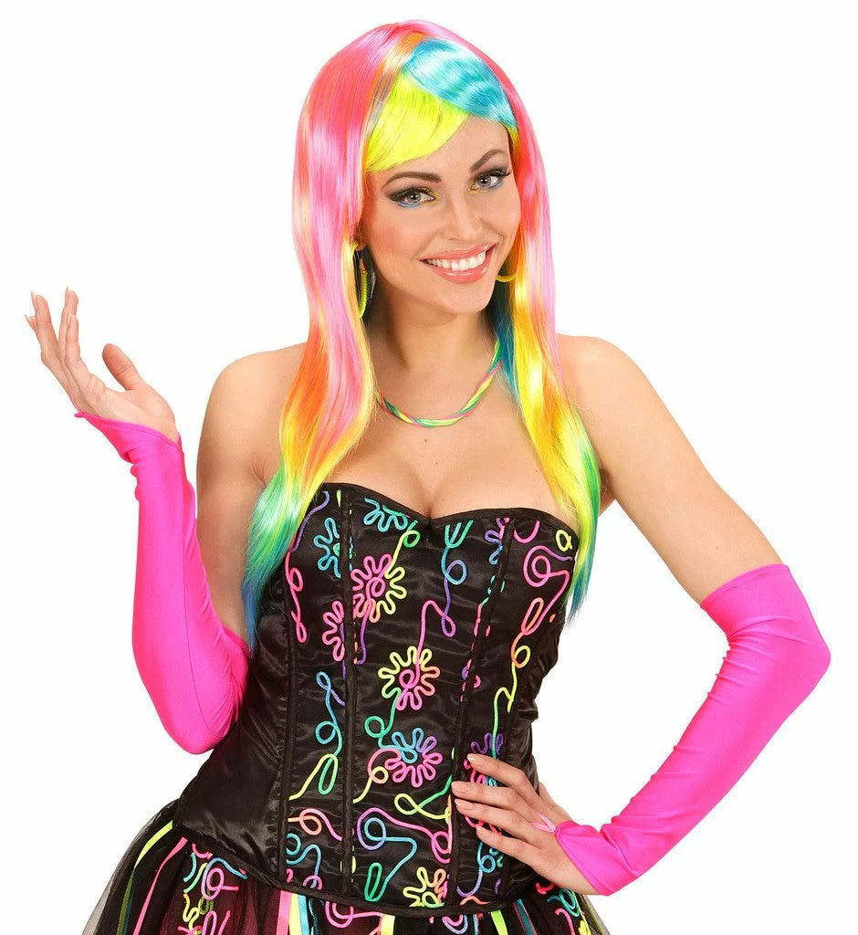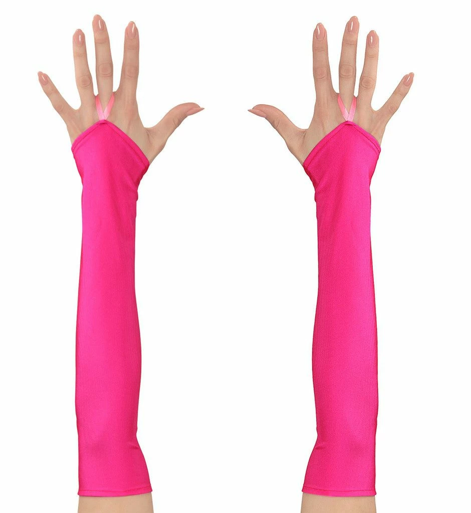 Tachtiger Jaren Vingerloze Handschoenen Satijn, Neon Roze