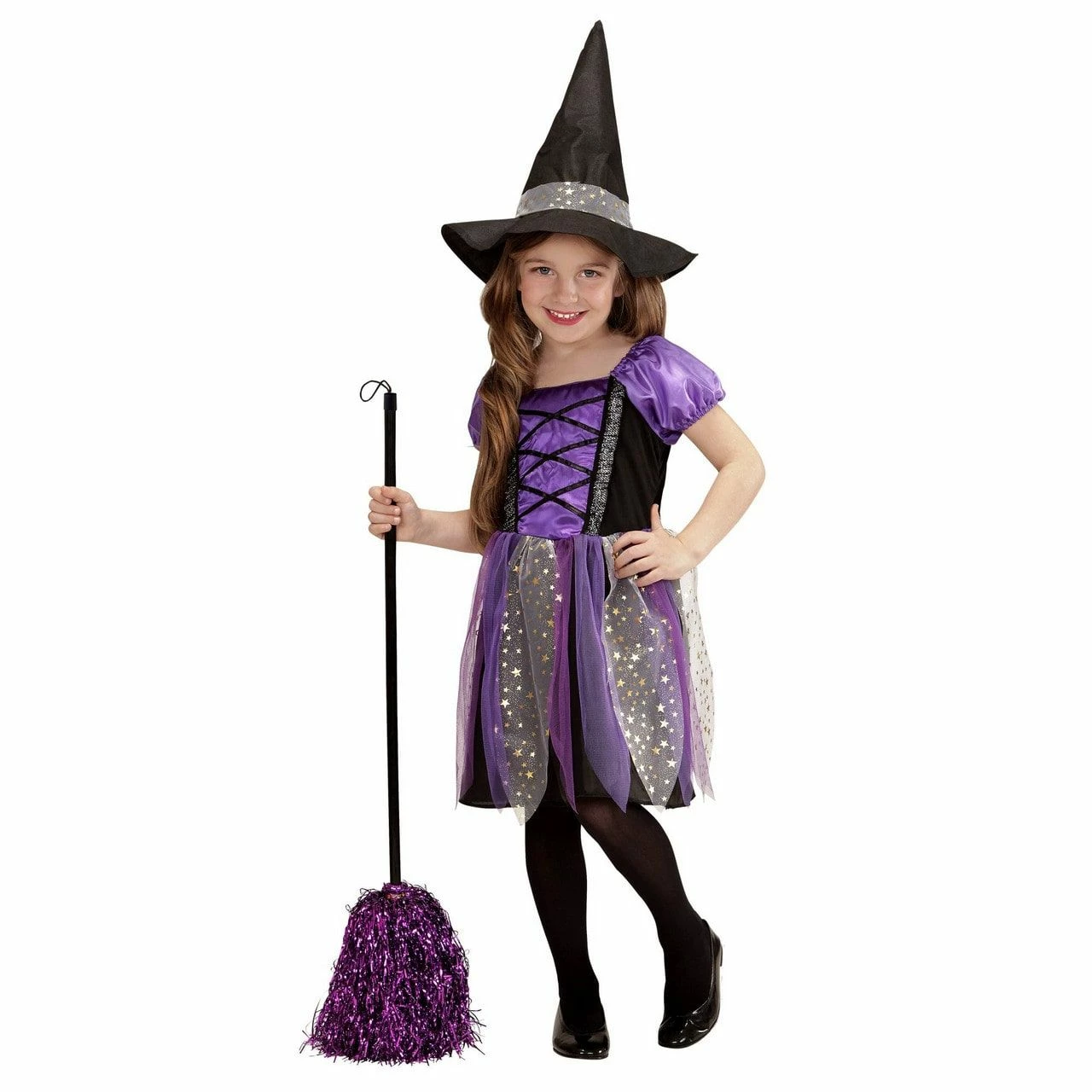 Zilveren Glitter Sterren Heks Meisje Kostuum